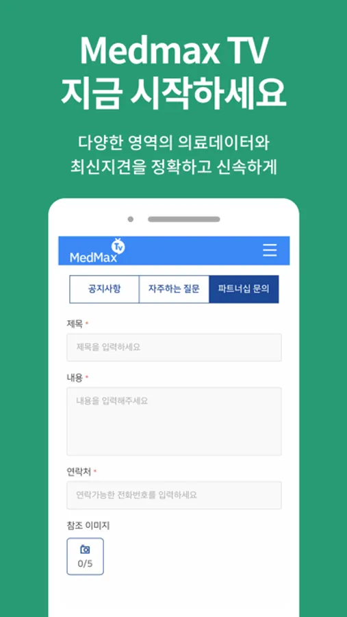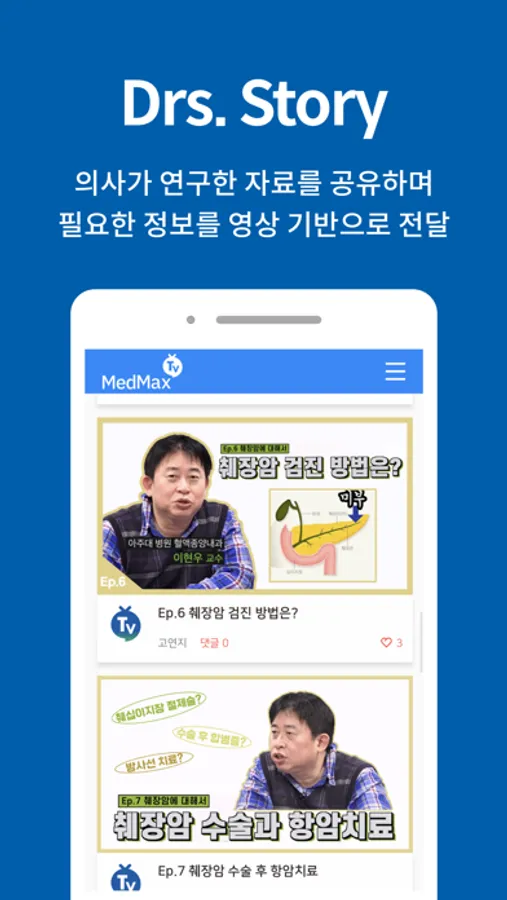 의사가 연구한 자료나 진료 패턴 등을 자유롭게 공유하고 진료&병원경영간 필요한 정보를 영상 기반으로 전달할 수 있습니다.