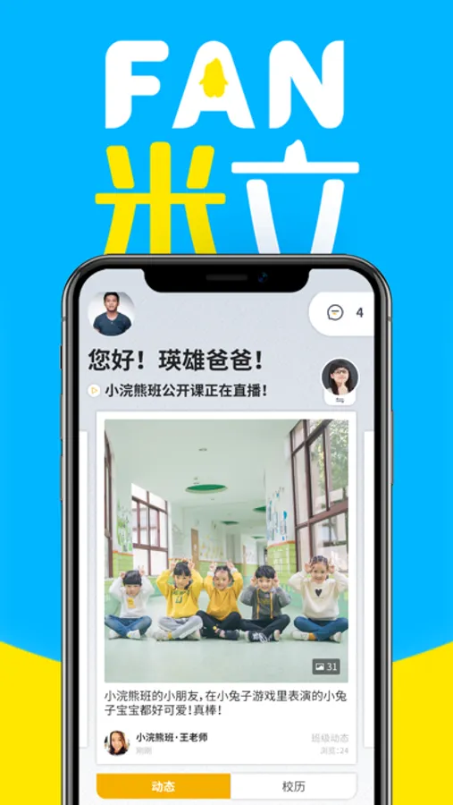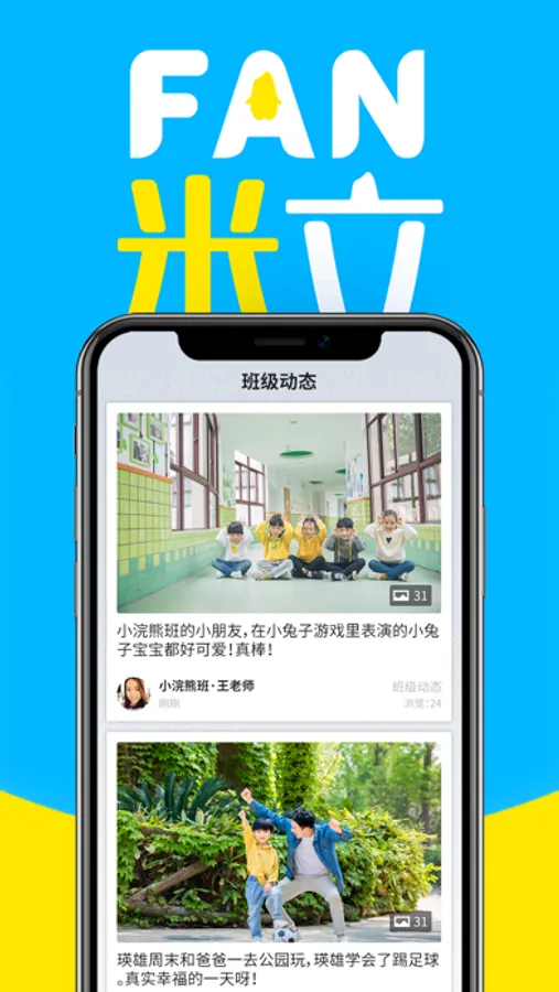 FAN米粒APP主要是为立人幼儿园家长进行家园互通、搭建信息桥梁的重要工具。通过FAN米粒APP家长可随时掌握幼儿信息,并可与幼儿园随时沟通,高效的同时也保证了信息的传递与准确。