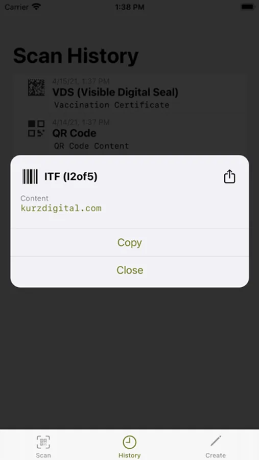 The read codes are stored in a history so that no more scanned links or information are lost.