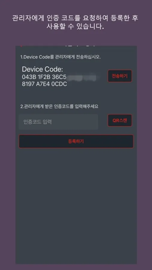 인증 코드를 등록 후, 호환되는 출입 리더기와 사용할 수 있습니다.