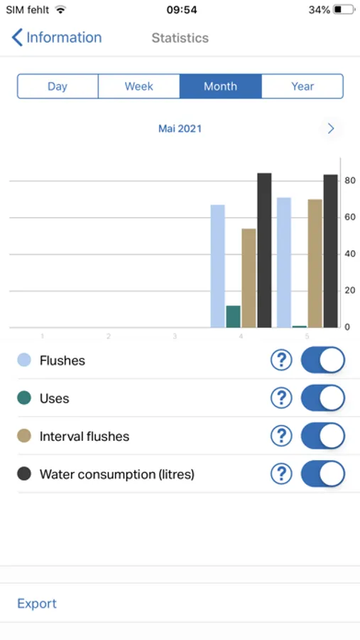 During operation, the user can access and export statistics such as usage, flushes and events. Cleaning mode deactivates the system in just a few steps when cleaning is about to be carried out. If maintenance work is required, the app provides support in carrying it out.