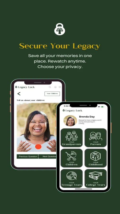Save your family legacy with Legacy Lock! Join the many families who use Legacy Lock to record their most treasured family memories, share with loved ones, and preserve for future generations. Unlimited followers. Choose your privacy. Easy to use for all ages!