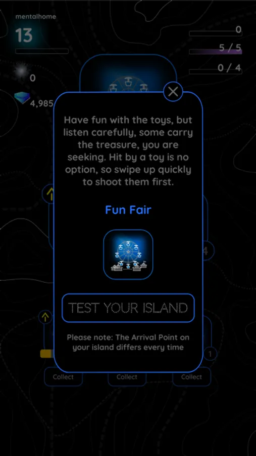 The FUN FAIR island is a happy place to be. You can shoot toys coming towards you. Some carry a treasure, some carry a bomb, that's the risk.