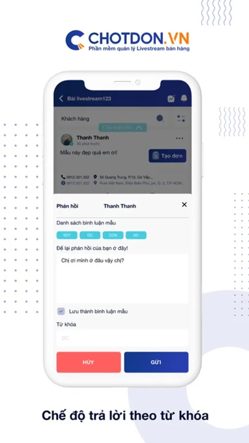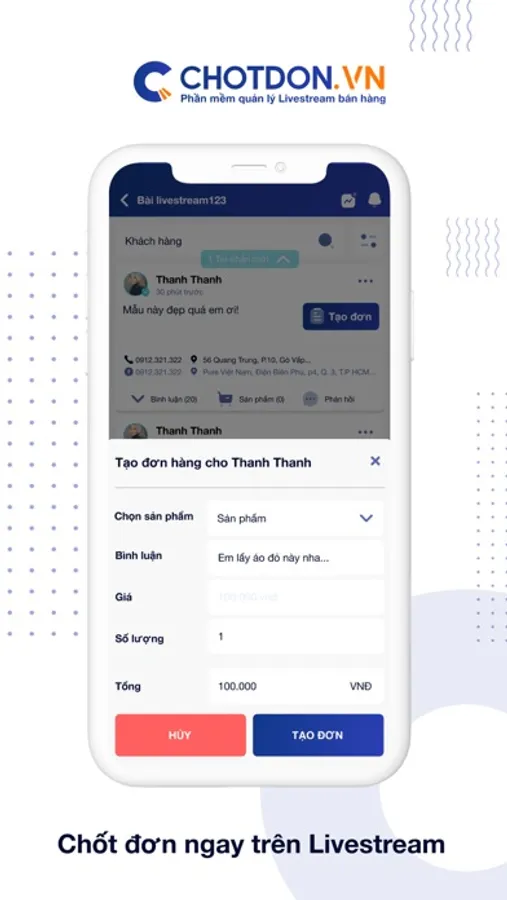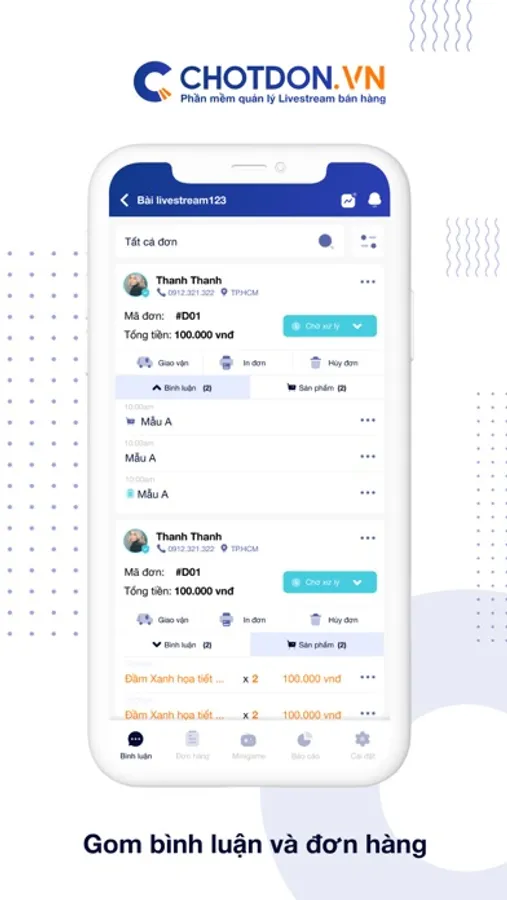 ChotDon - Phần mềm quản lý Livestream bán hàng trên 2 nền tảng Web và app, hổ trợ tối đa cho công việc livestream của bạn. Với những chức năng nổi bật sau: