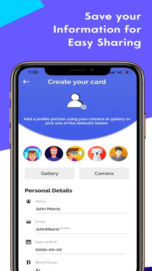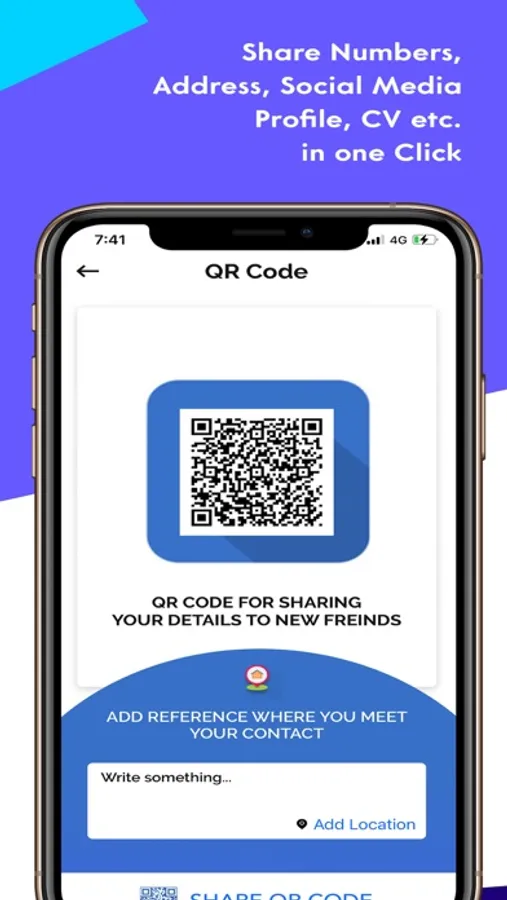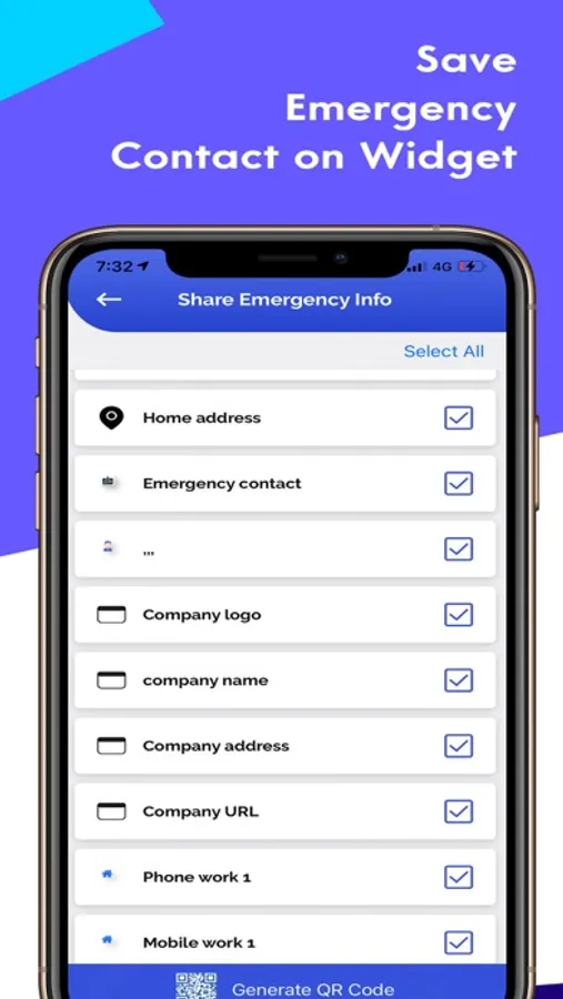 • Have a selective sharing of your information (Contact number, Address, Date of Birth, Blood Group, Office address, Social Media Links, Current location) by generating the QR code.