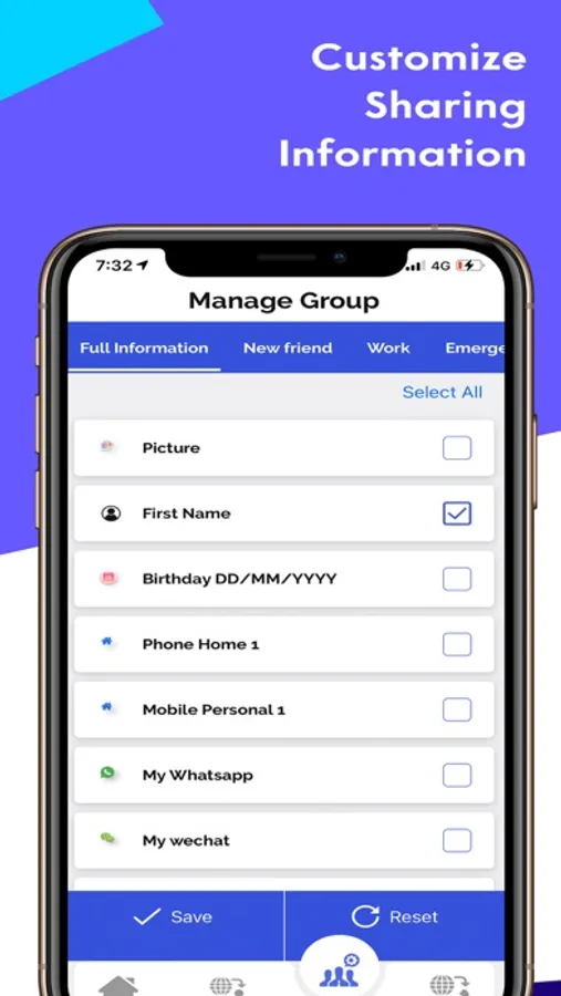 Forget about dictating your number in the ears anymore. Share all the info you want from your profile with just one click by just scanning the customized QR code and save it directly in the phone book. Have the control in your hands to select the data that you would like to share with other users.