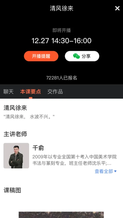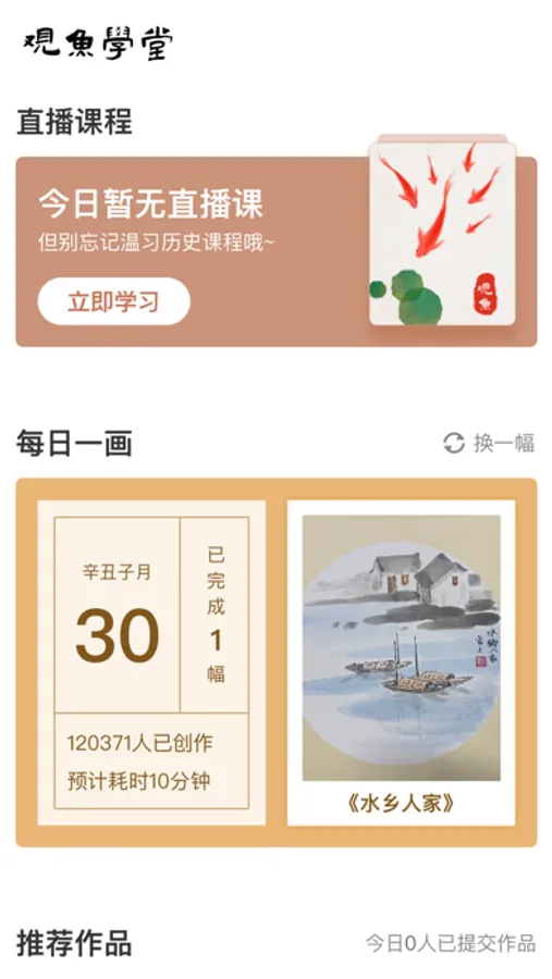 观鱼学堂,国内知名书画在线教育平台之一。依托来自中国美术学院具备优秀传统文化素养与学术能力的资深教师团队,秉承“因材施教”教学理念,提供系统国画、书法等课程。打造正统教学大纲、名师在线直播、学习互动社区、专属课后督学“四位一体”的教学特色,致力于教授正统书画技法,提高全民艺术素养,丰富精神文化生活,发扬中国传统文化。