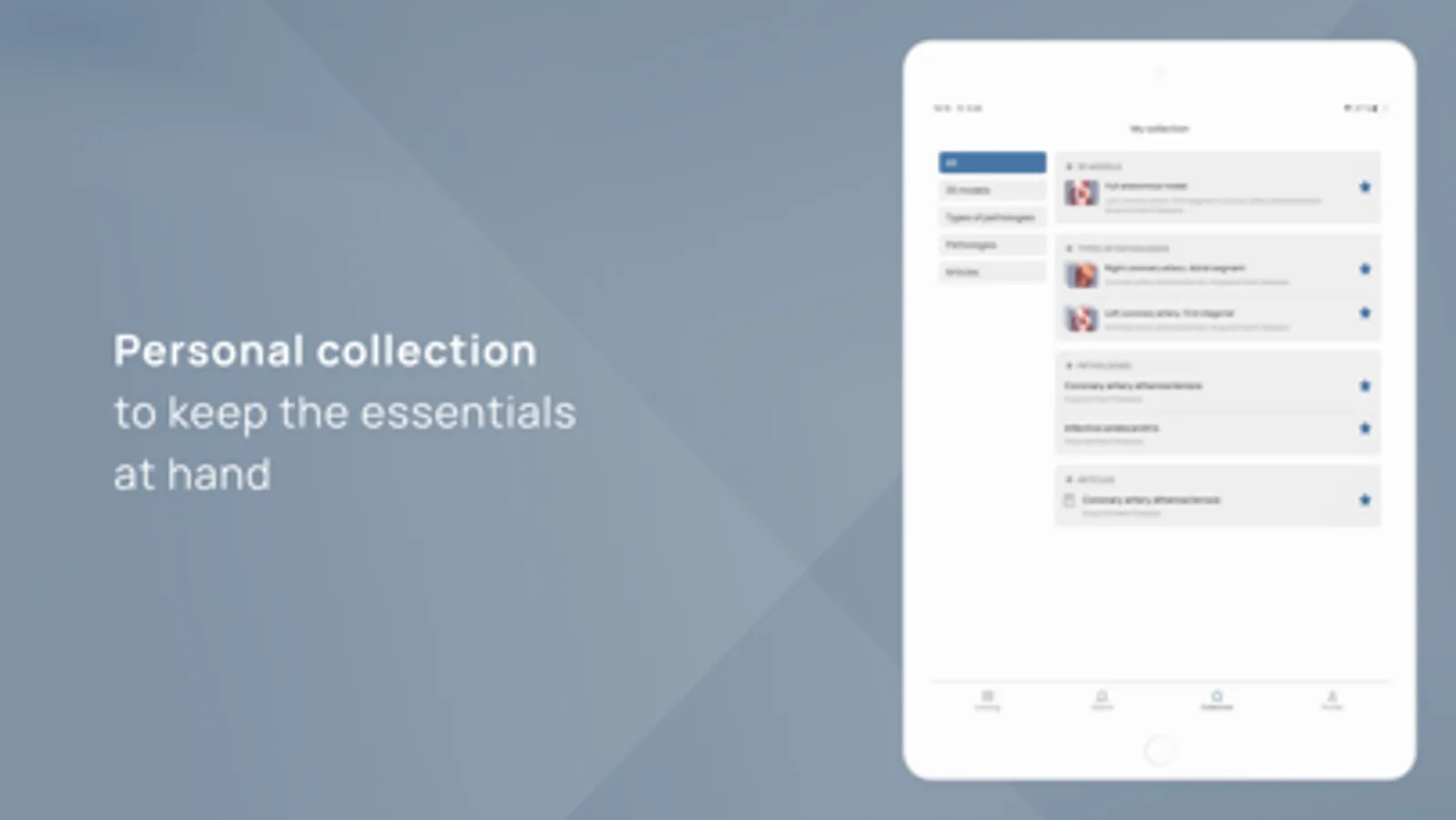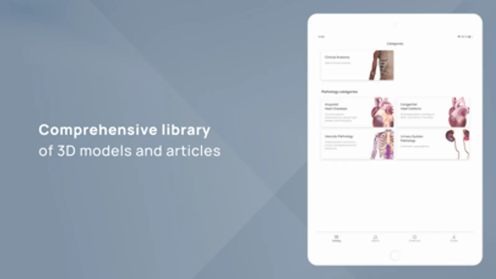 In the app, you will also find medical articles that describe the types and subtypes of pathologies from an anatomical point of view, clinical presentation, and treatment methods. Use them to prepare for classes or refresh your knowledge, save materials in your personal collections and share with mates.