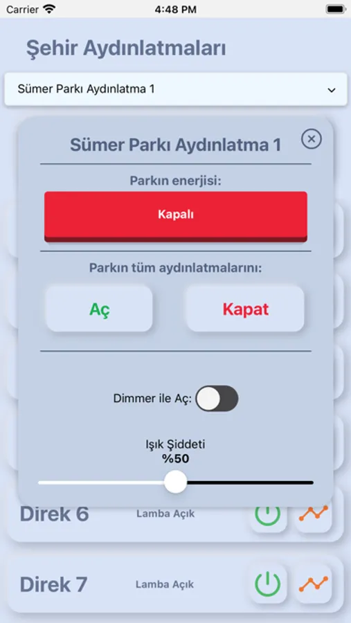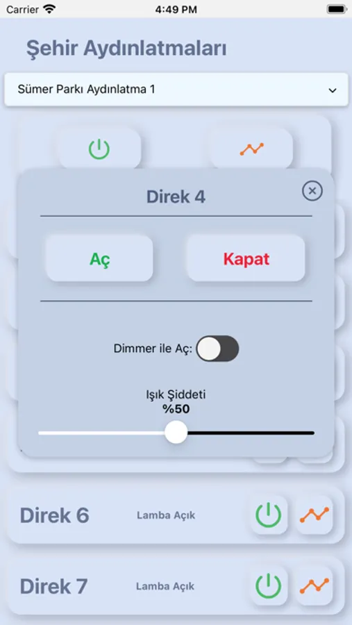 Bu uygulama akıllı şehircilik ile ilgili cihazlarınızı (aydınlatma, sulama vb.) kontrol ve takibini yapabilmek için yapılmıştır.