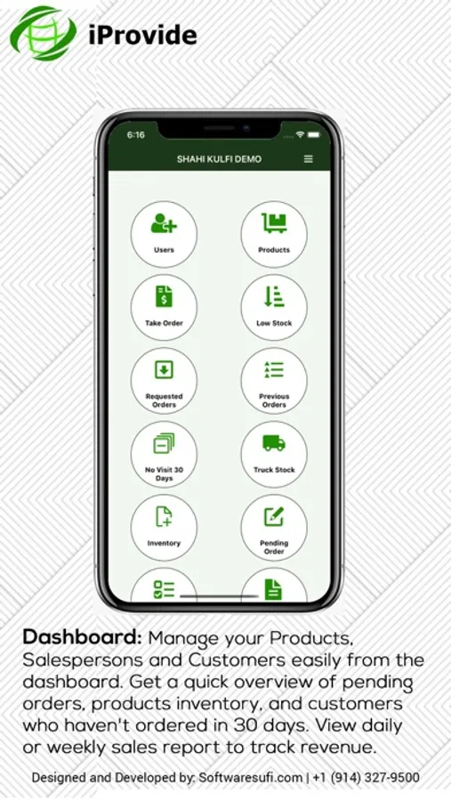 iProvide is the application used for managing the distribution network of goods to stores and outlet. In this application you can add and track your drivers, products, customers, and take orders as well.