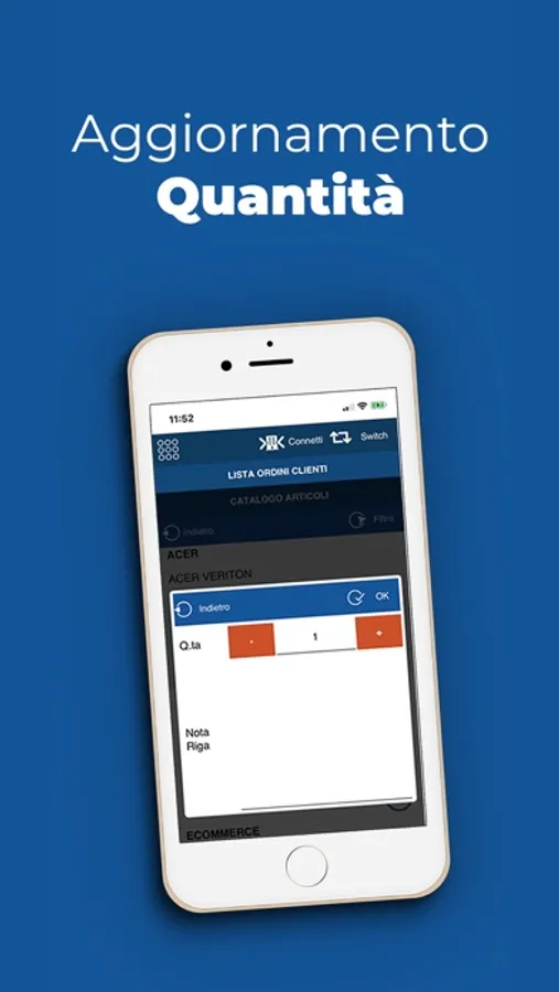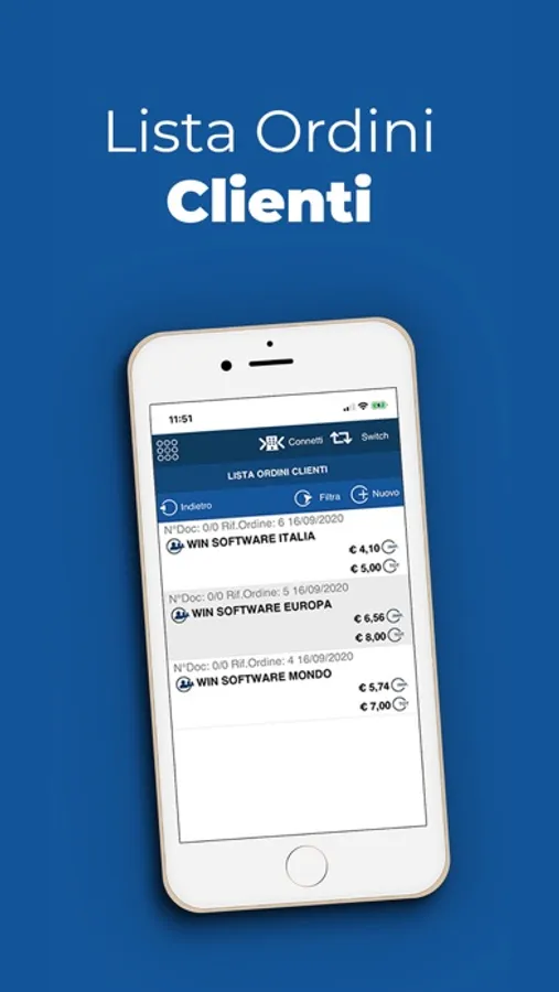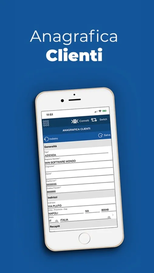 Consente di anagrafare clienti e inserire ordini e grazie all'integrazione nativa con il gestionale permette di ricevere ed inviare i dati in tempo reale