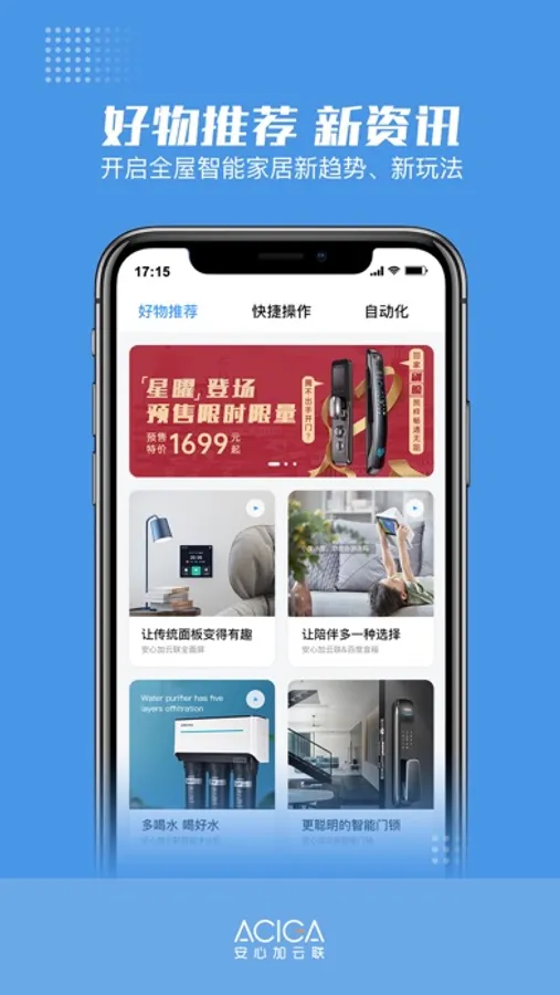 - 智慧家居,作为一个智联平台我们对接了各类智能设备满足您对智慧家居的需求,实现手机APP控制家电。