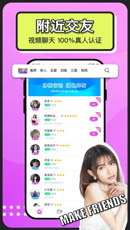 【颜值在线】视频交友,快速视频配对,同城约会帅哥美女。
