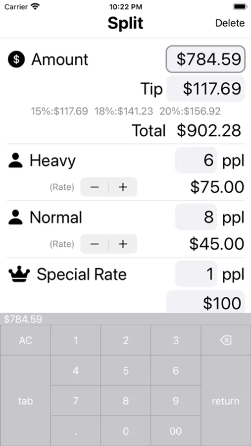 -This mode splits the bill into 3 groups of " Manager ", “Senior" and “Junior”.