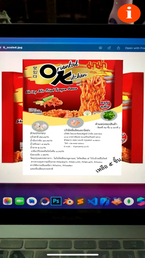 แอพพลิเคชั่น AR สามารถสแกนรูปสินค้า เพื่อดูคุณประโยชน์ของมาม่าได้
