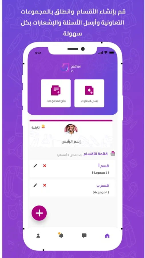 (جاذر إن ) هو التطبيق الذي ينشده المعلمين والمعلمات والمدربين والمدربات لإنشاء مجموعات من الأعضاء داخل القسم مع تعيين قائد للمجموعة، وإدارة مناقشات المجموعة وطرح الأسئلة واستقبال الإجابات بطريقة تفاعلية جذابة. ( جاذر إن ) أو ( لنجتمع معا ) ونتناقش في مجموعات تعاونية مشوقة.