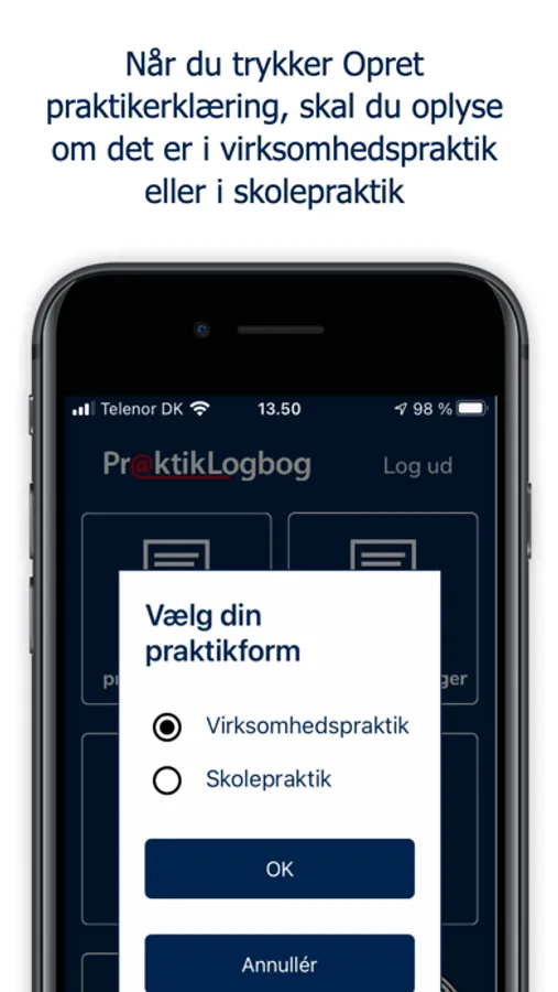 PraktikLogbog: Så er der styr på praktikerklæringerne i din erhvervsuddannelse. På en nem og overskuelig måde kan du og dit lærested følge op på dine praktikmål, så du er sikker på, at du får lært det, du skal i den praktiske del af din uddannelse. App’en er dit værktøj til at oprette de lovpligtige praktikerklæringer, som dit lærested skal udfylde og indsende i løbet af dit uddannelsesforløb. Du får også mulighed for at tage billeder og videoer af det arbejde, du udfører, og på den måde dele dine erfaringer med kolleger, skolekammerater, faglærer, familie m.fl.