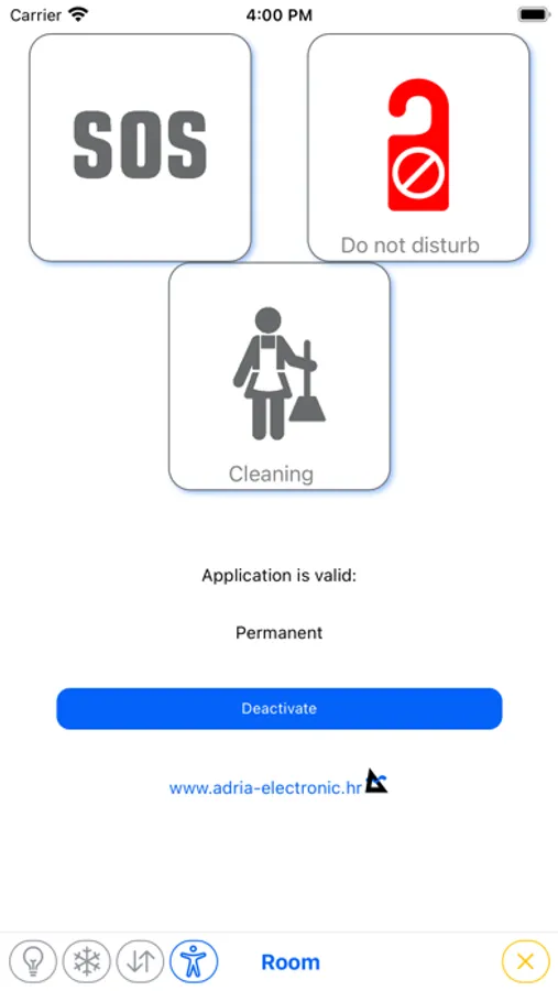 Application used to control and monitor equipment in smart hotel room system supplied by Adria electronic.
