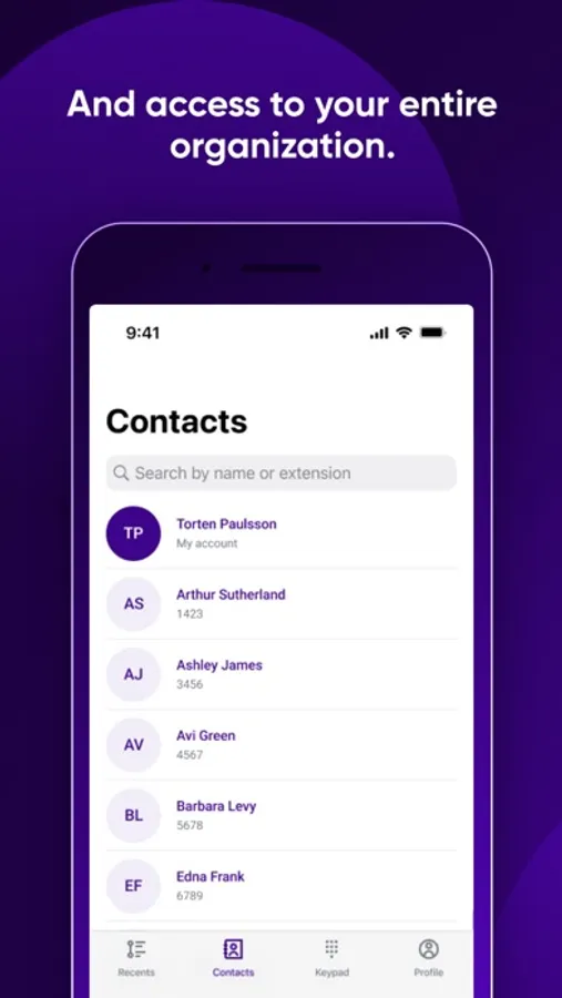 • Ability to present the name of the personal contacts when receiving and making calls inside the application