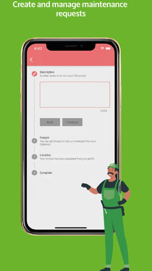 Your tenants can request maintenance requests through the app, provide optional pictures, give additional detail. And you can keep track of all your requests and resolve them through the app.