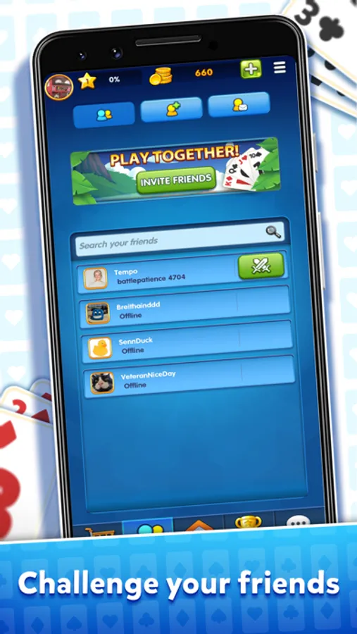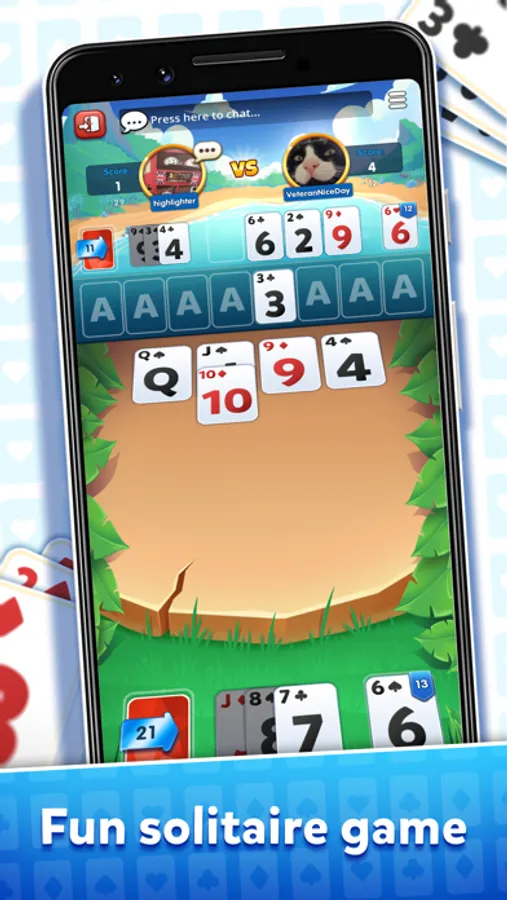 Play the most fun casual free-to-play Solitaire Card game of all! Play against your friends, family or people from all over the world. Join friends who are already playing or make new ones. Win a round and gain coins, experience and achievements. BattleSolitaire is a game of skill, speed and strategy. Outplay your opponent, discard all your cards and win BATTLESOLITAIRE!