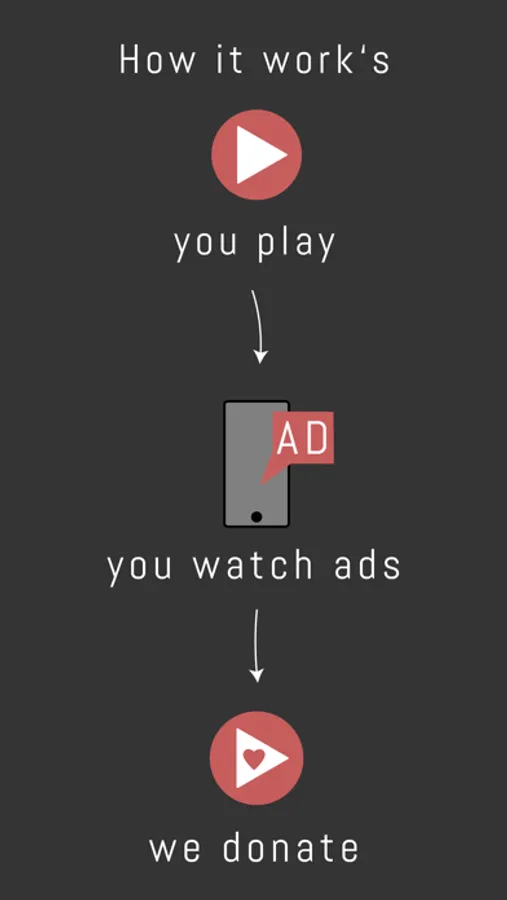 With our concept "PLAY & DONATE", anyone even with little time can make a donation without spending money. What do you have to do for that? Just download the app, play the game, watch the commercials and afterwards we donate 30% of the advertising revenue to the WorldWildlifeFund (WWF). Play & Donate describes the process of people playing mobile games while part of the ad revenue of the game is given to WWF (World Wildlife Fund).