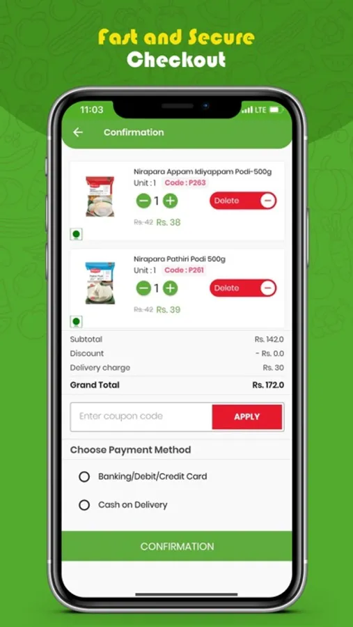 You can choose either cash on delivery or online payment with your debit or credit cards, UPI.