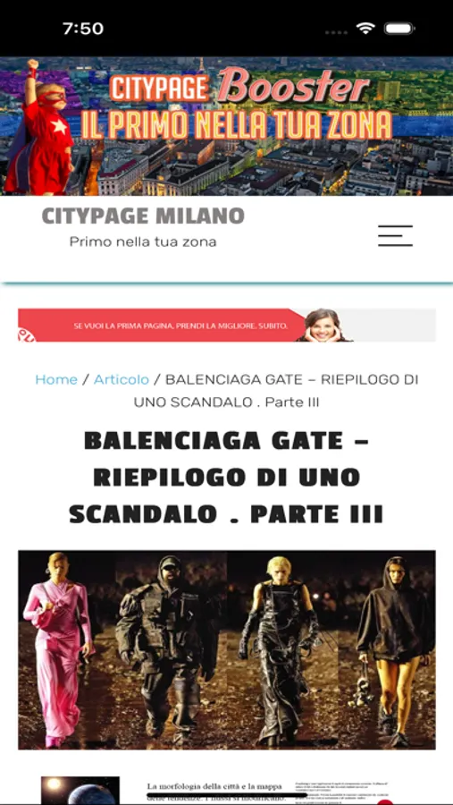 Mobile app for Citypage Milano Italy. Contiene Notizie, Eventi e negozi