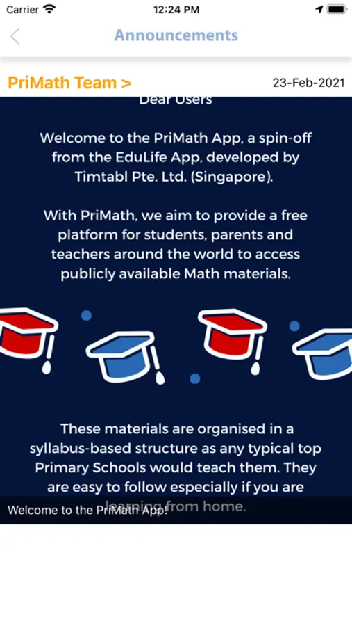 Welcome to the PriMath App, a spin-off from the EduLife App, developed by Timtabl Pte. Ltd. (Singapore).