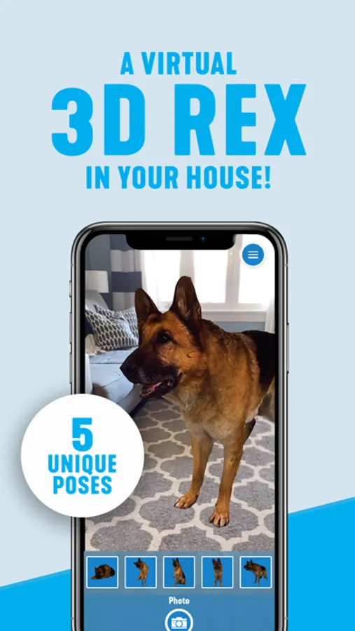 With a few simple taps a virtual Rex will respond to a series of pre-determined commands like sitting, laying down and even catching a ball. Take a photo of yourself (or your pet) with Rex and share it instantly with your family and friends. Featuring cutting-edge volumetric capture technology, it’s like Rex is right there in the room with you!