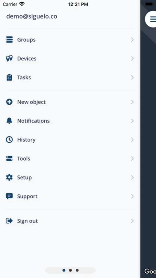 Siguelo is a mobile app that would allow you to manage your GPS tracking devices. You need to be registered as a user to be able to log in to the app.