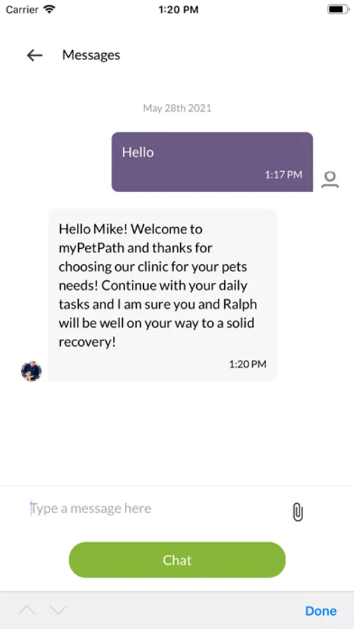 Communicate with your veterinarian directly through our app with the Chat tool.