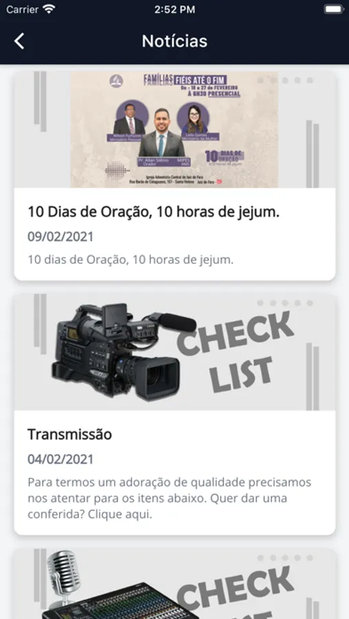 O aplicativo oficial da Igreja Adventista Central JF tem as seguintes funcionalidades: