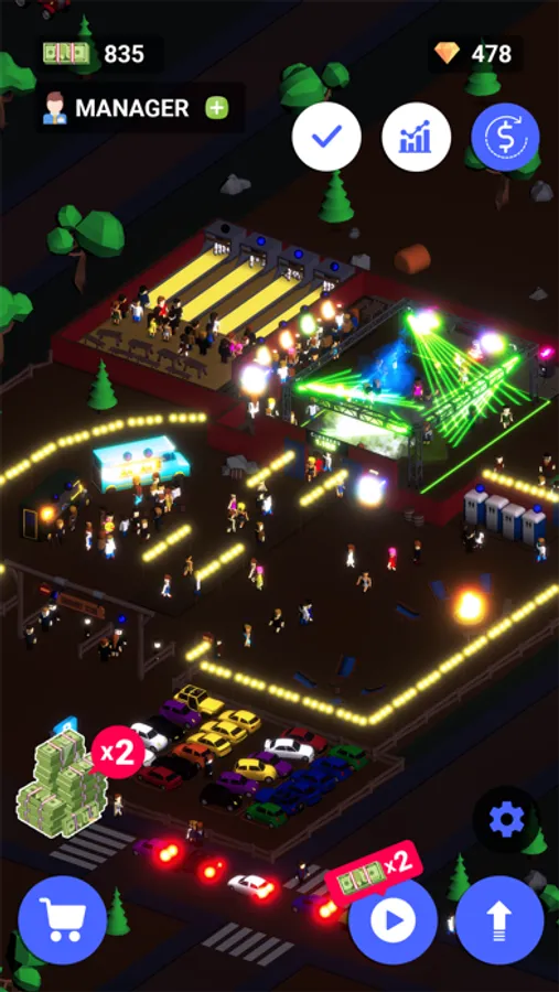 Develop technologies, upgrade boosters and make your entertainments working more efficient. Increase capabilities of entertainments, toilets, parking and bouncers! All upgrades are based on incremental mechanics so you will keep constant progress.
