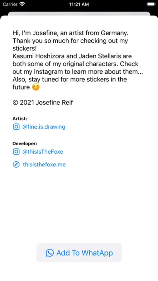 The name of the artist is Josefine, hence the name. And the stickers feature two of her original characters: Kasumi and Jaden from the planet Shim. For more information check out her Instagram @fine.is.drawing