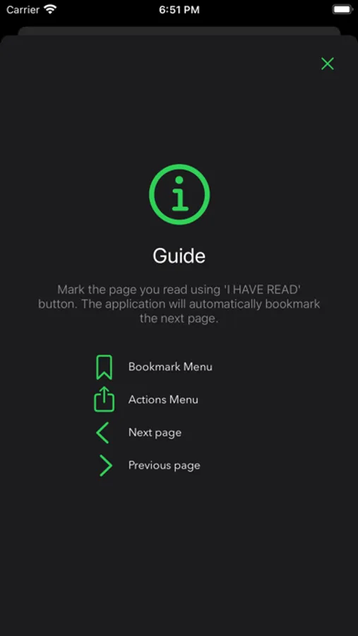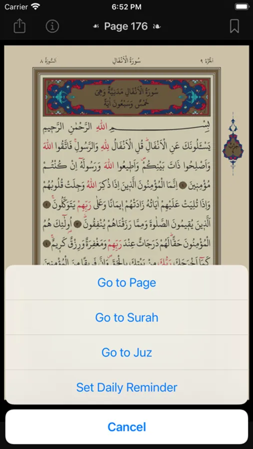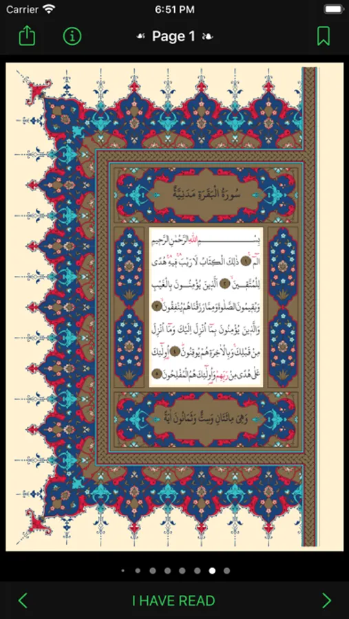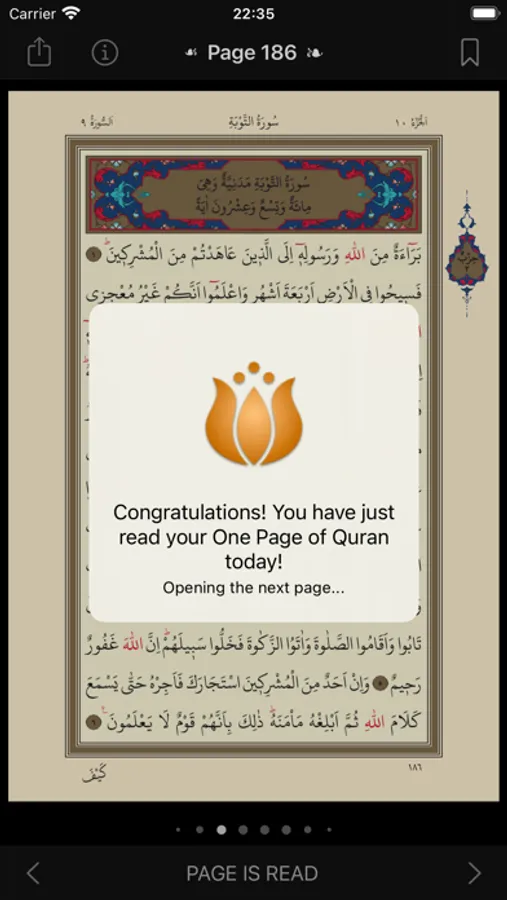 "One Page" is an application developed to gain the habit of reading the Quran. It reminds you to read the Quran every day. It marks every page you read and allows you to continue where you left off the next day.