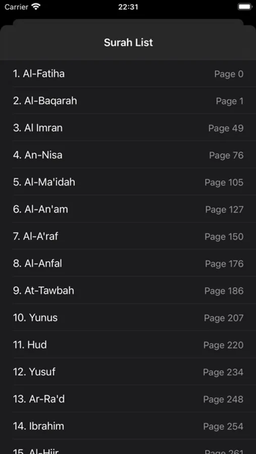 It provides you an easy use with its simple and legible interface. You can easily reach the chapter or juz you want.