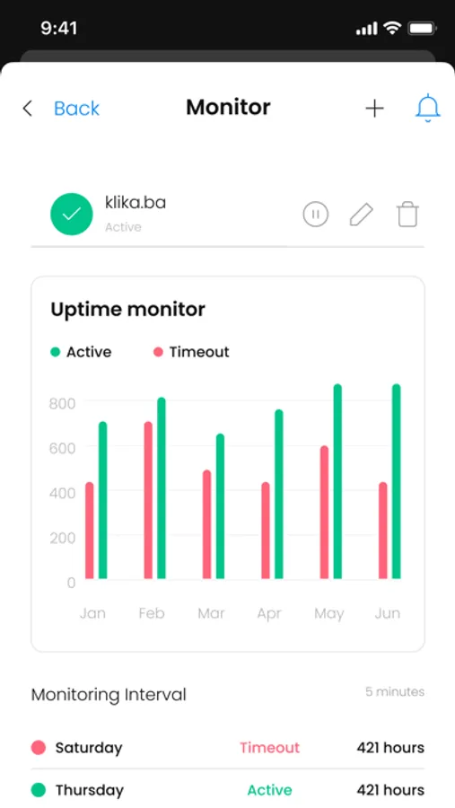 Whenever your website is down, you will be notified instantly by mail and notifications, thereby allowing you to act on time. Also, you will be notified once the monitors are up again with the information as to how long they were down. UpBot gives you an overview your monitors and the ability to group them for better visibility. In addition, interestingly, UpBot has a do not disturb mode, where you can turn off notifications for certain monitors and notifications will be received silently. UpBot provides a visual display of monitor status where statistics can be monitored at various time intervals.