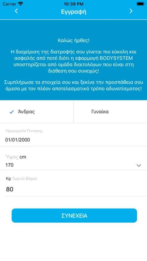 Η εφαρμογή BODYSYSTEM αποτελεί ένα καινοτόμο εργαλείο ελέγχου του βάρους και υποστηρίζεται από ομάδα Διαιτολόγων που είναι στη διάθεση σου συνεχώς, κάνοντας τη διαχείριση της διατροφής σου πιο εύκολη και ασφαλή από ποτέ! Μπορείς πλέον να καταναλώνεις αυτό που θέλεις στο χρόνο που το θέλεις και ταυτόχρονα να απολαμβάνεις θρεπτική επάρκεια και ενεργειακή οριοθέτηση με τη χρήση πόντων αντί θερμίδων. Οποιοδήποτε φαγητό θελήσεις να καταναλώσεις -αν δεν το βρεις στην τεράστια λίστα τροφίμων της εφαρμογής- μπορείς να ζητήσεις από το Διατροφολόγο σου να το προσθέσει για σένα! Η καθημερινή διατροφή γίνεται παιχνίδι φέρνοντας τον προσωπικό σου Διαιτολόγο στην οθόνη του κινητού σου για να μπορείς να απολαμβάνεις χωρίς ενοχές τα αγαπημένα σου φαγητά!