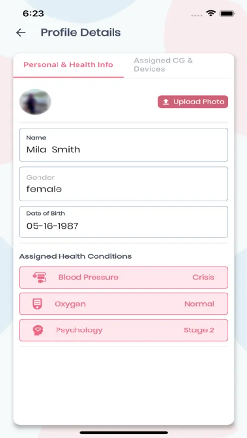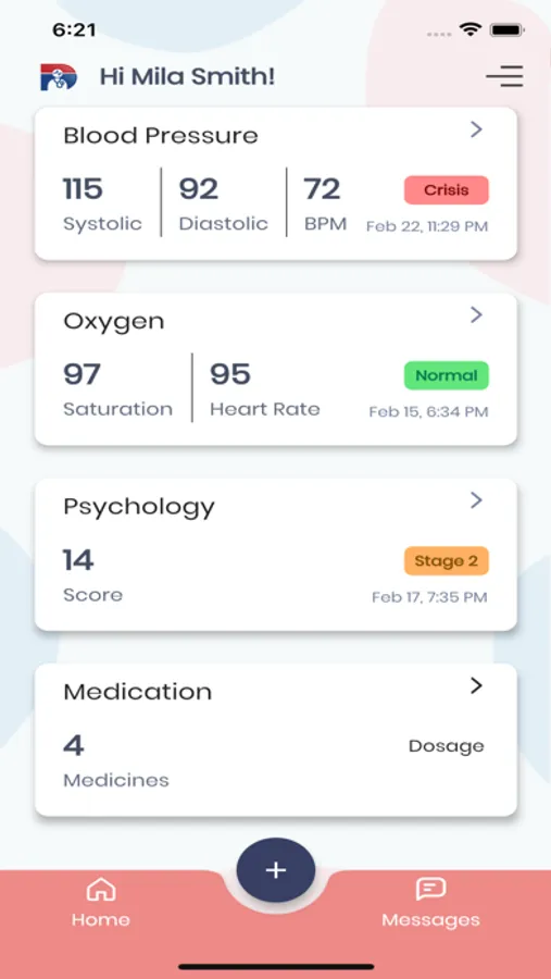 Messaging with caregivers about how the patient feels together with readings from the remote monitoring devices are reviewed within the app.