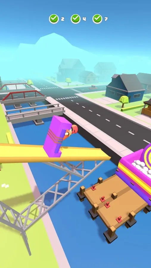 Carry as many items as possible with trampolines. Be careful, don't fall face down, you might hurt your somewhere.