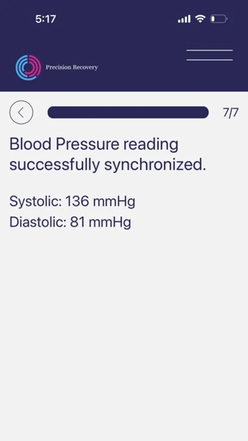 +Bluetooth Connectivity: Device integration with Precision Recovery Mount Sinai-provided blood pressure cuff