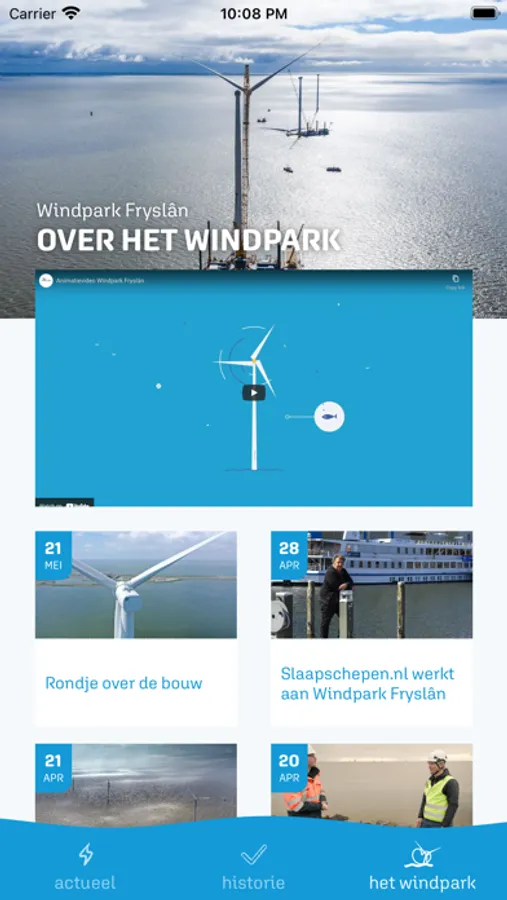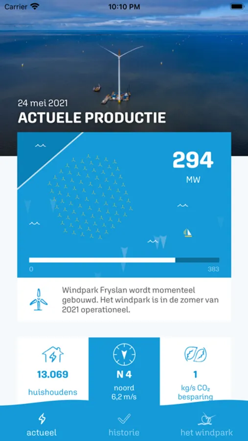 De Windpark Fryslân App laat u op aansprekende wijze zien hoeveel stroom Windpark Fryslân opwekt, hoe hard het waait en hoeveel stroom er de afgelopen tijd is geproduceerd. Daarnaast bevat de app het laatste nieuws.