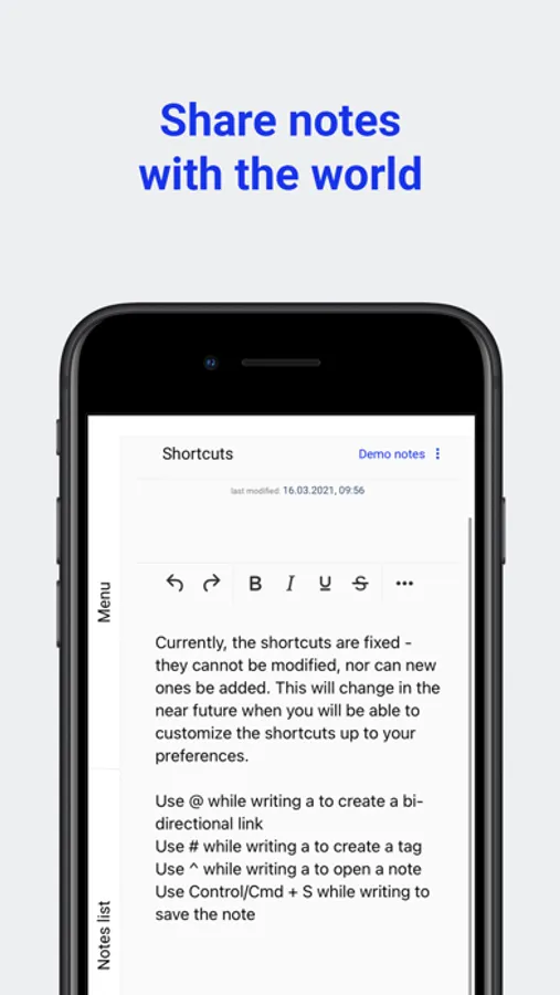 Sharing a public link to one or more notes is 1 click away. No account is required on the other side to view what you shared with them. The notes are accessible on the web only to those, who have the link. You remain in complete control and can revoke or manage the access at any time.