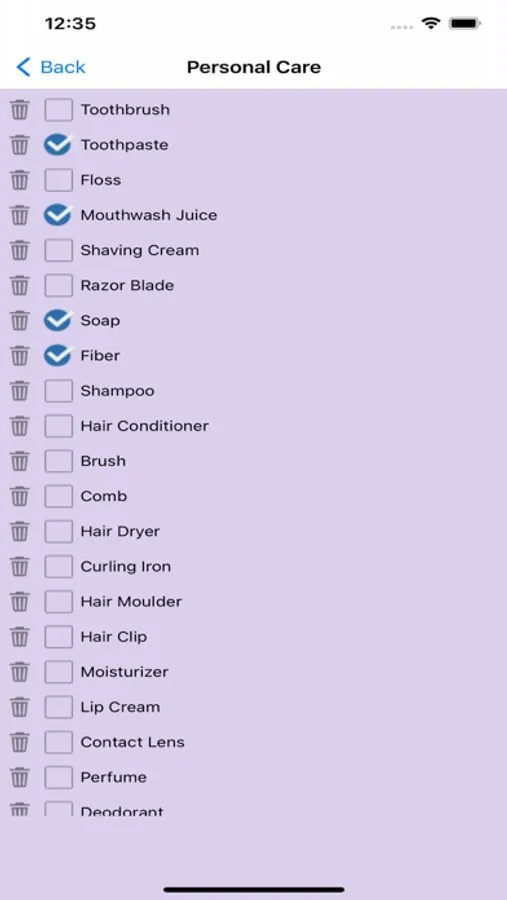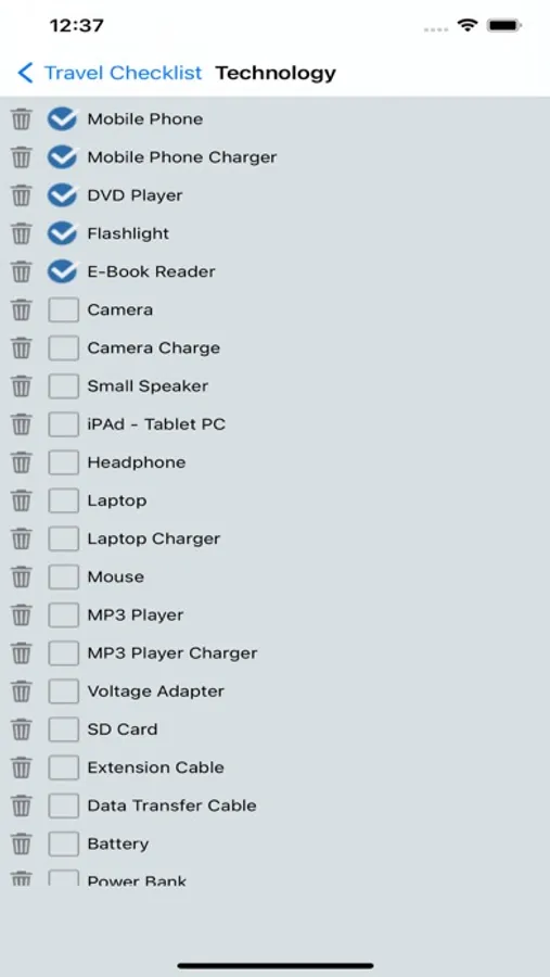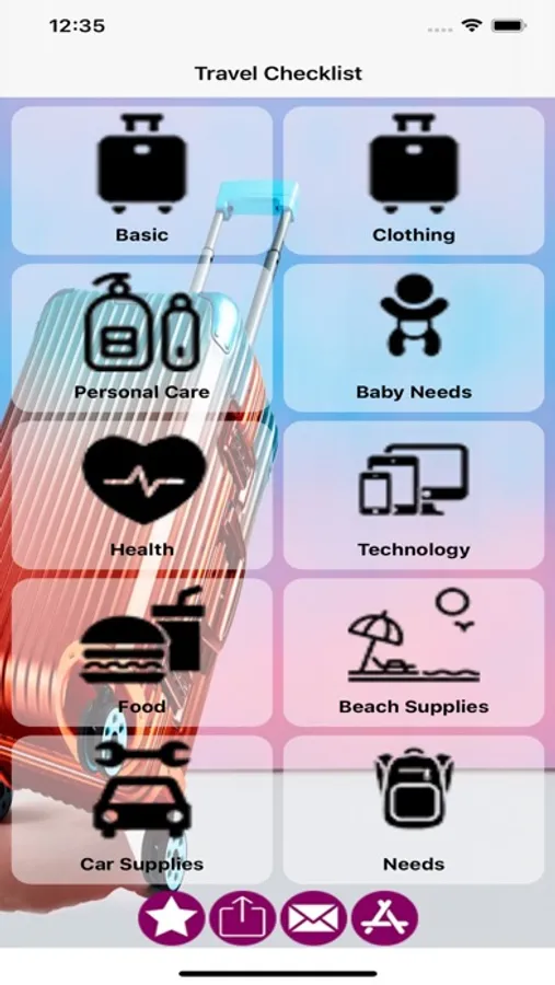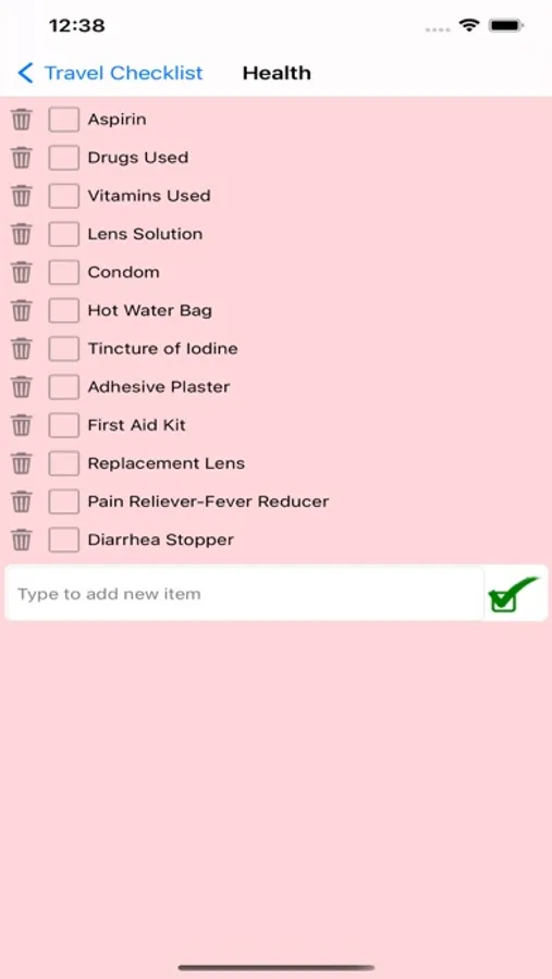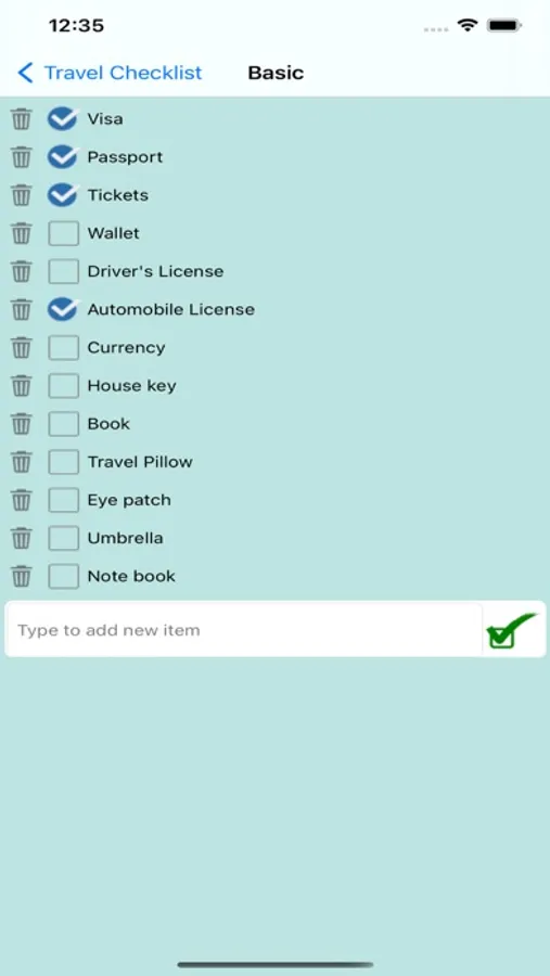 Travel List reminds you of things you should take with you on your travels and lets you chek.