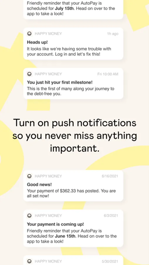 Please note: This app is for existing Payoff™ members to manage their accounts. To learn more about Happy Money, please visit happymoney.com!