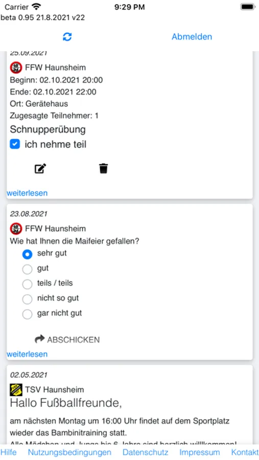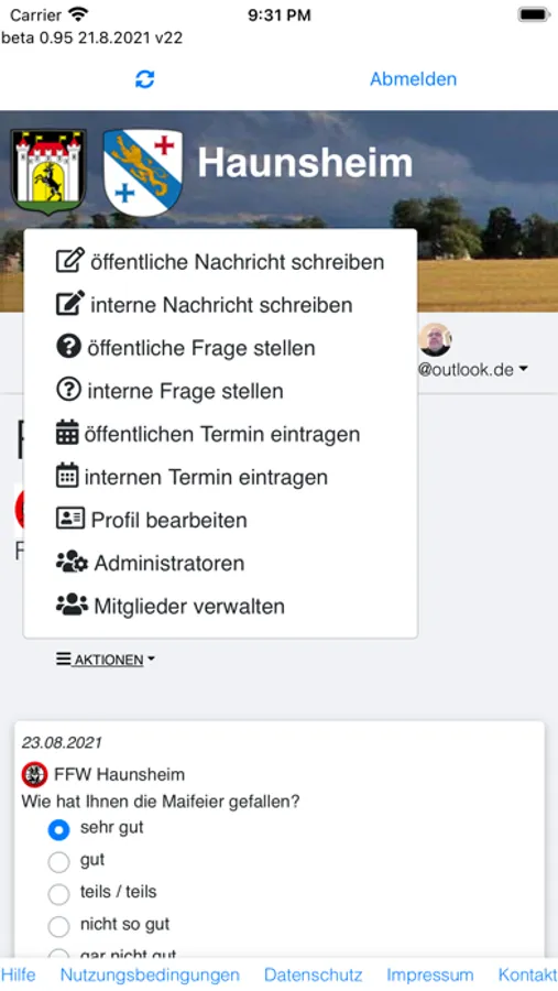 Vereine, Kirchen, Schulen können Nachrichten schreiben, Termine veröffentlichen und Fragen stellen.