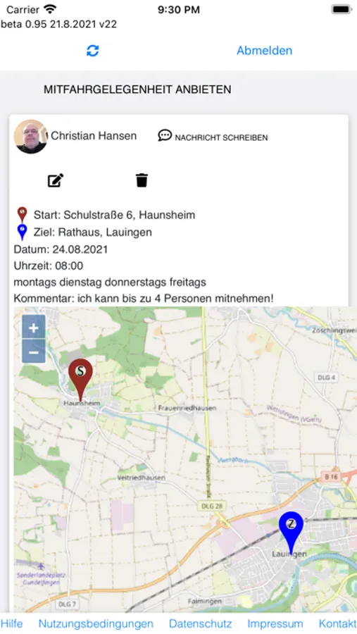 Nutzer können Mitfahrgelegenheiten suchen und anbieten, sowie Einträge im Flohmarkt setzen.