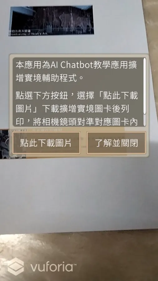 本應用使用擴增實境技術作為AI Chatbot教學輔助應用程式。