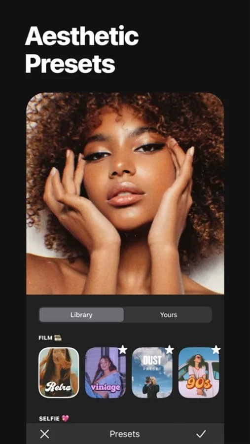Use the Magic AI Retouch function to get flawless skin and natural color correction. Our vintage presets give your visuals a unique, nostalgic vibe, and with our easy-to-use editing tools, you can customize each preset to create your own signature style.